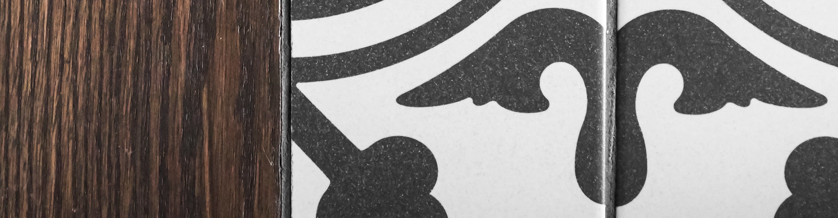 White Mosaic Tile with Dark Wood